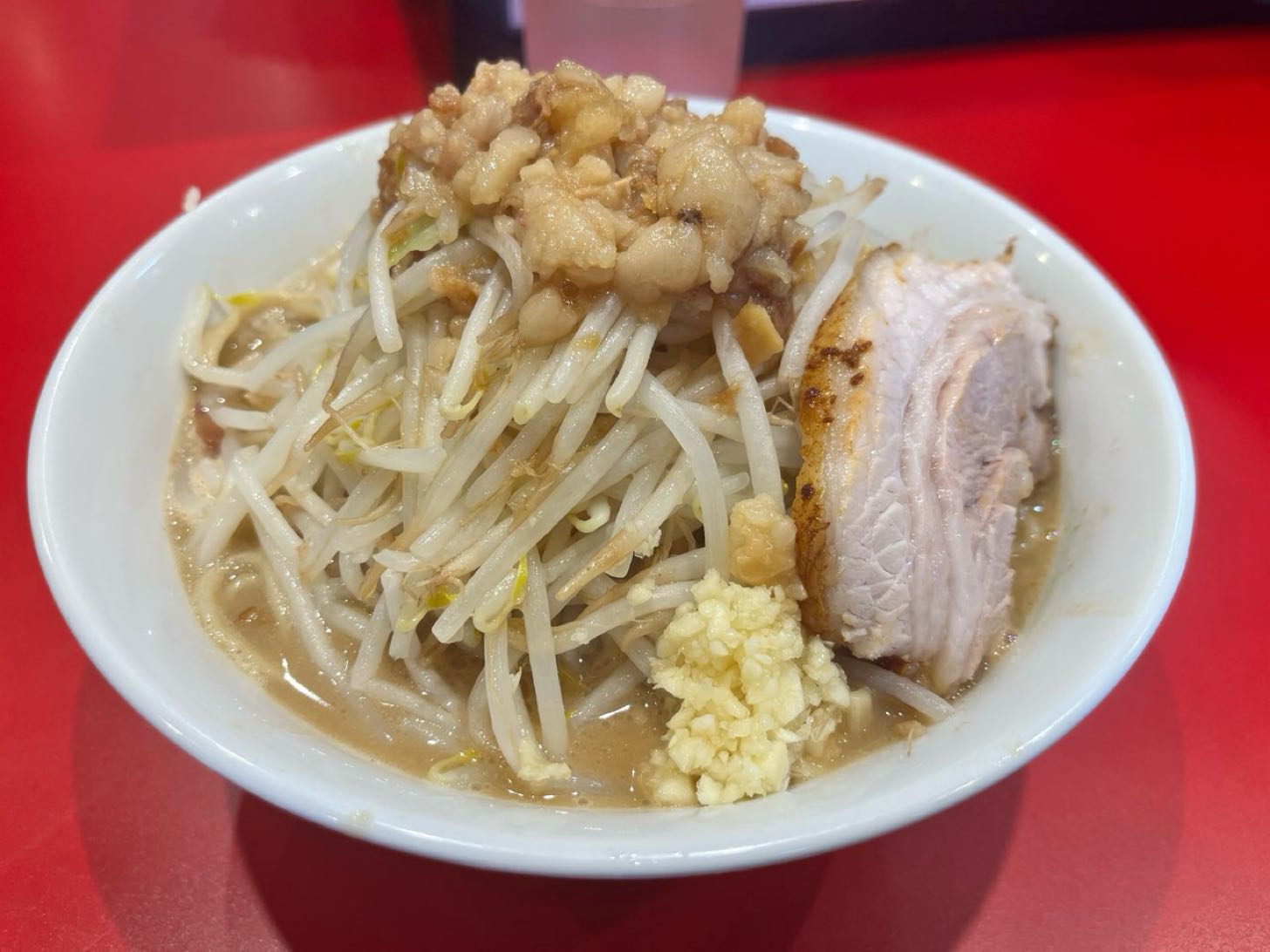 醤油感弱目のしっかり乳化スープに平打麺とシャキヤサイ。最近は乳化は控えめな方が本家っぽいと人気かと思いますが、こう言う感じも結構好き。平打麺と相まってちばからインスパイアと言ったりしますが。