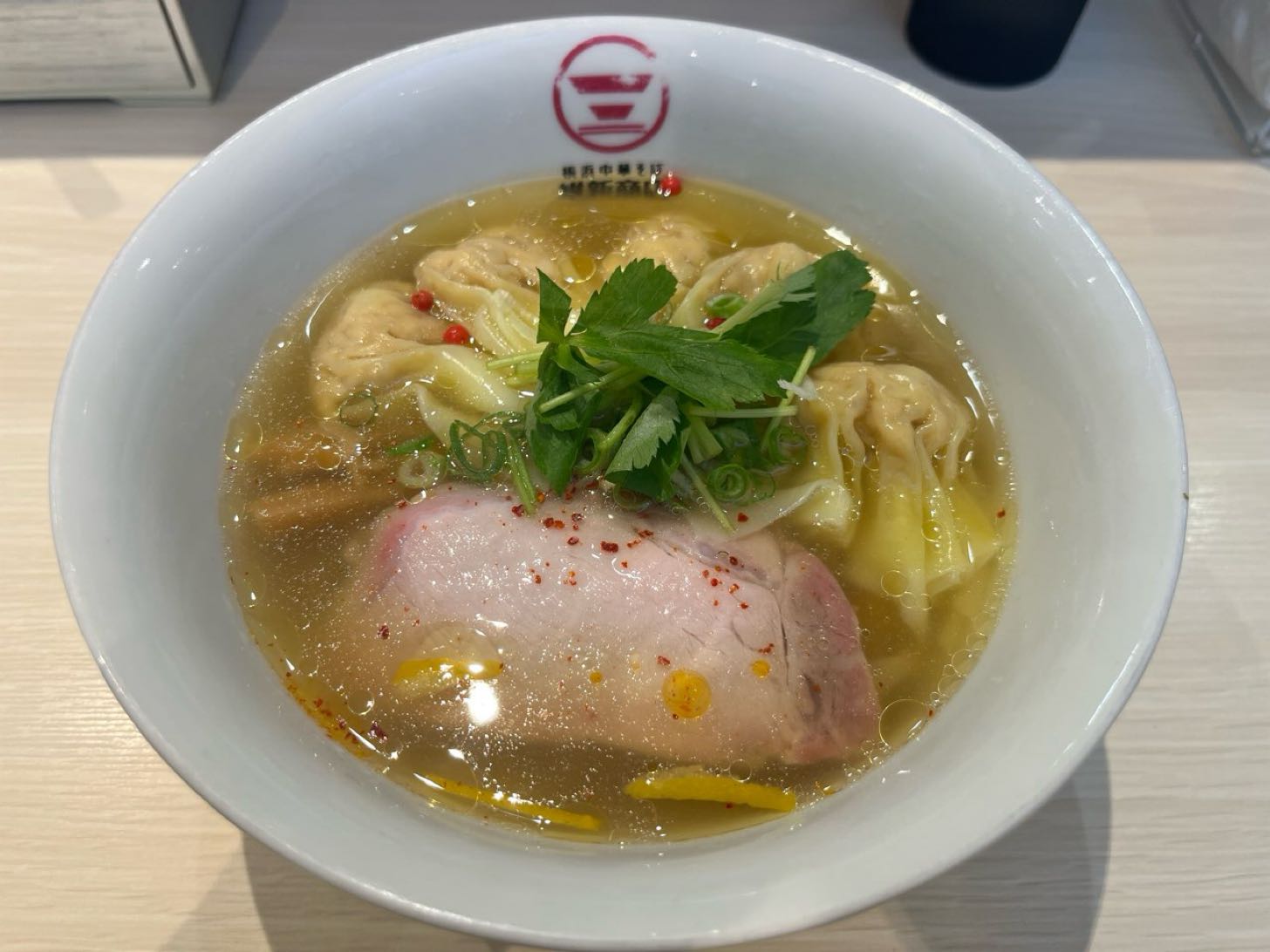 柚子がしっかり効いた塩ラーメン。うまい。手揉み太麺が啜り心地よし。ワンタンはふんわり餡つるつる皮。