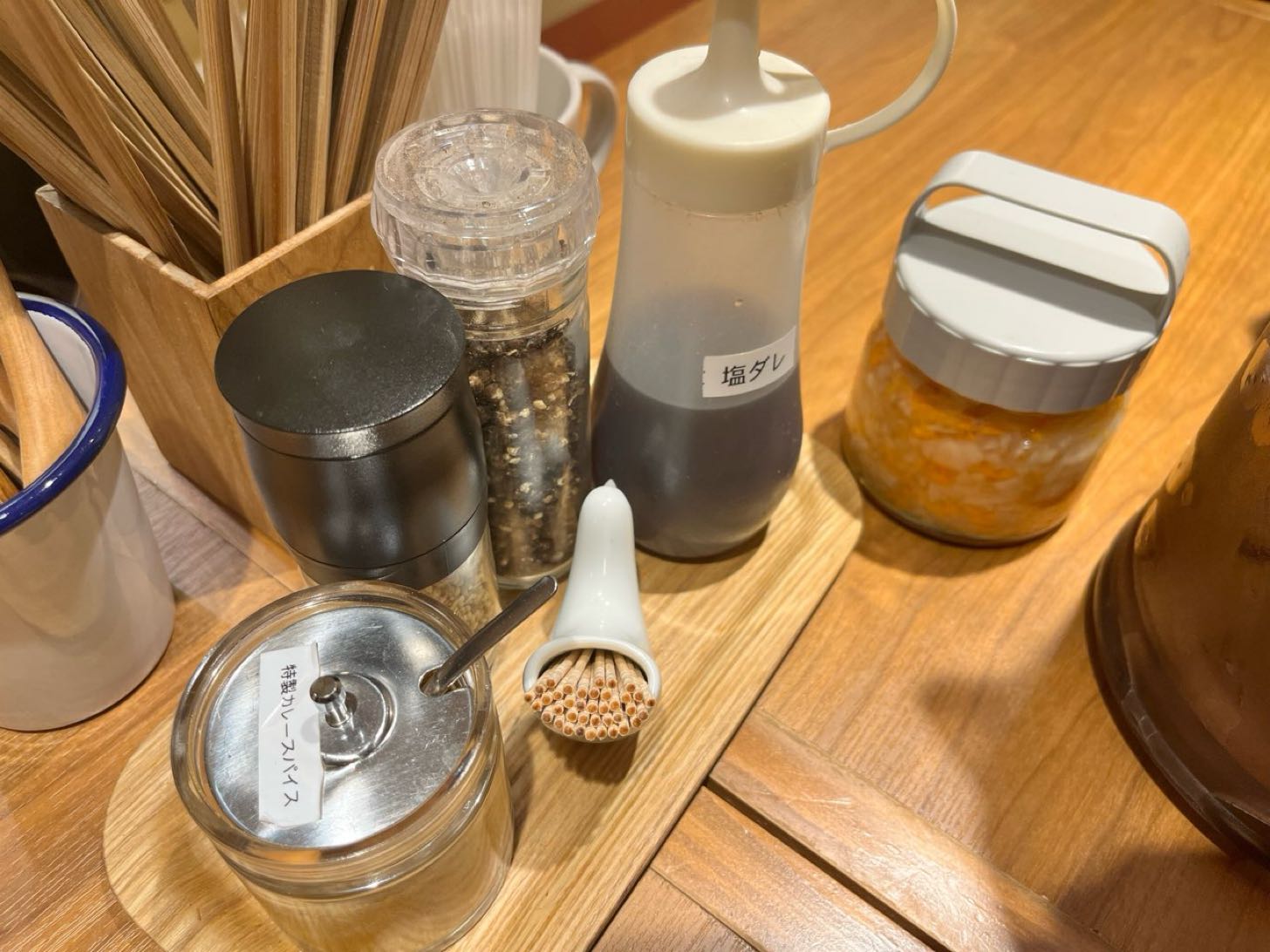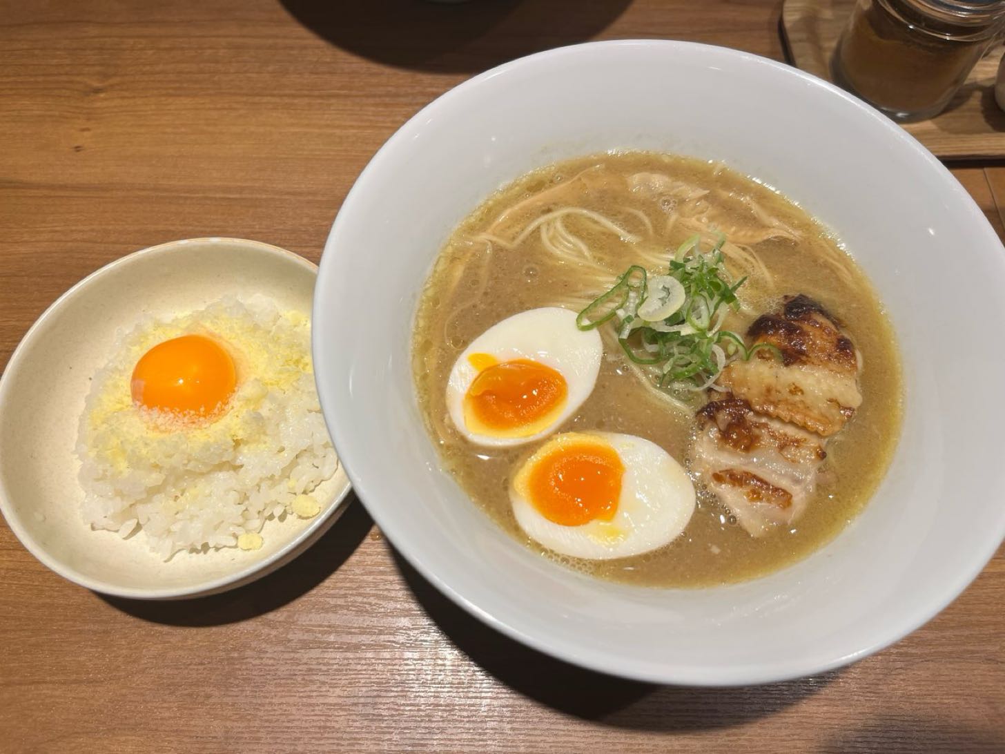 「ぽてり」と「さらり」の2種類あって、ぽてりは野菜由来の澱粉ぽい粘度あるスープで、思ったより天下一品のこってり寄りの味だった。それが味変のカレースパイスやピクルスで綺麗に離れていくのが面白かった。セットのチーズ卵ごはんは、まあ〆のリゾット仕立てで食べればうまいよね。