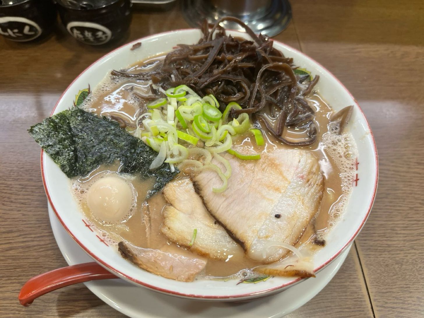 脂感がほとんどなくサッパリしてるけど骨っぽい独特の濃い豚骨ラーメン。ツルっとした中細麺もうまい。食後が良すぎる