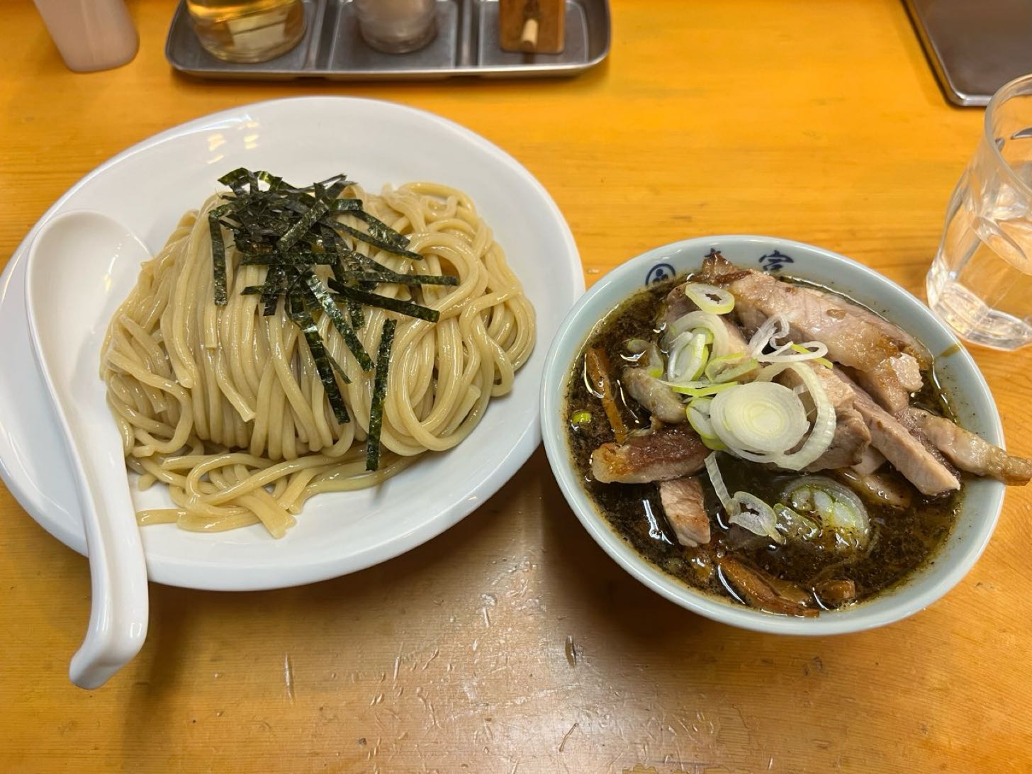 甘辛酸で胡椒がジワジワくるつけ汁に丸い太麺。麺の色味が灰色強くてちょっと心配になったけど問題なくうまい。