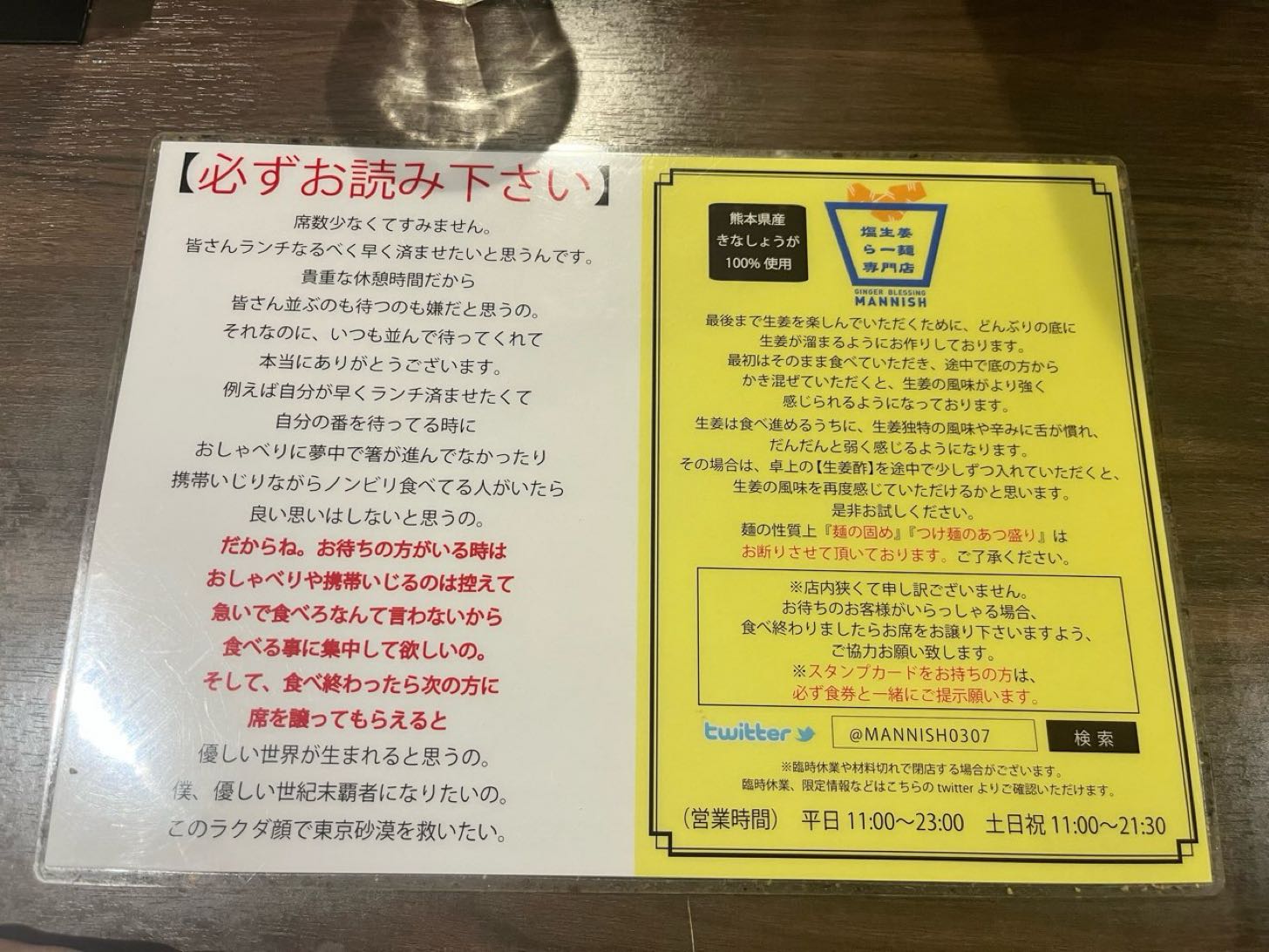 塩生姜らー麺専門店MANNISH 淡路町本店