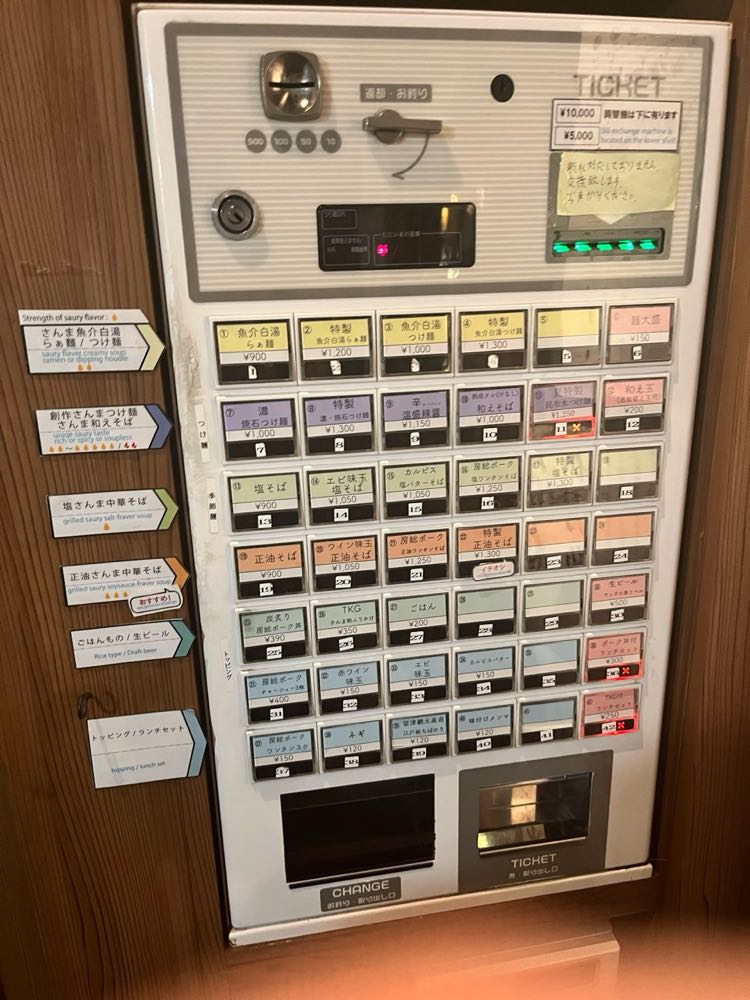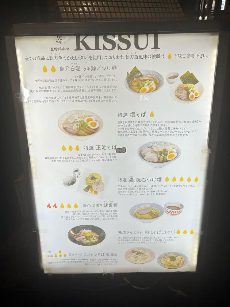 一口啜ると確実に感じる秋刀魚感のスープにカンスイぽさのあるプリ細麺。正直古さは否めないけどうまいもんはうまい。醤油と塩で麺変えてるのね、