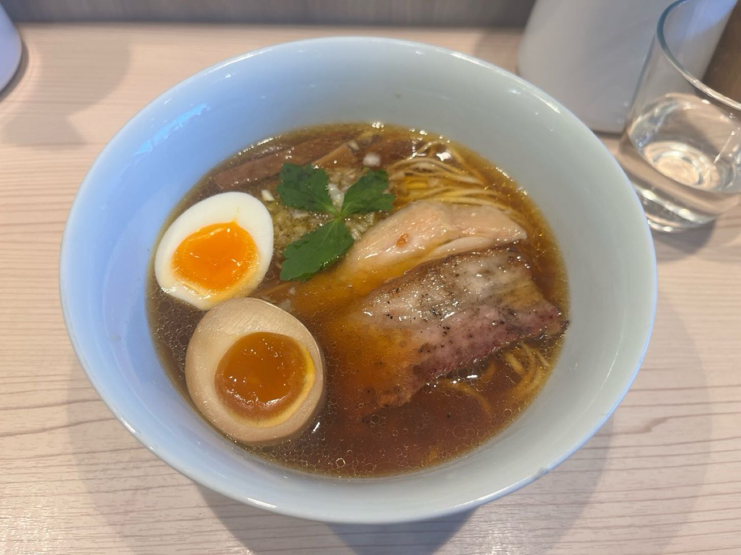 安定感のあるツル平打麺にまろやかバランススープが合ってとてもよい。これ自家製麺なんだ、すごいね。