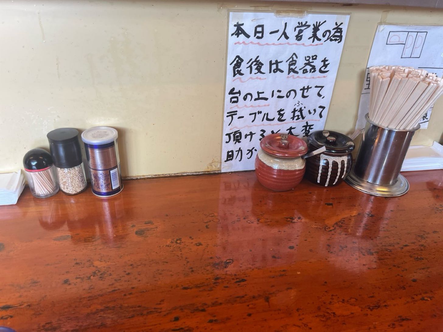シャバいけど味があるスープにしっかりめの麺。シンプルに豚の味がする厚めなロース煮豚チャーシュー。早めにニンニクショウガ入れて、風邪を早めに退治したい気分にちょうどいい。海苔は3枚あると嬉しいけどまあコスパよね。のり多め¥200。
