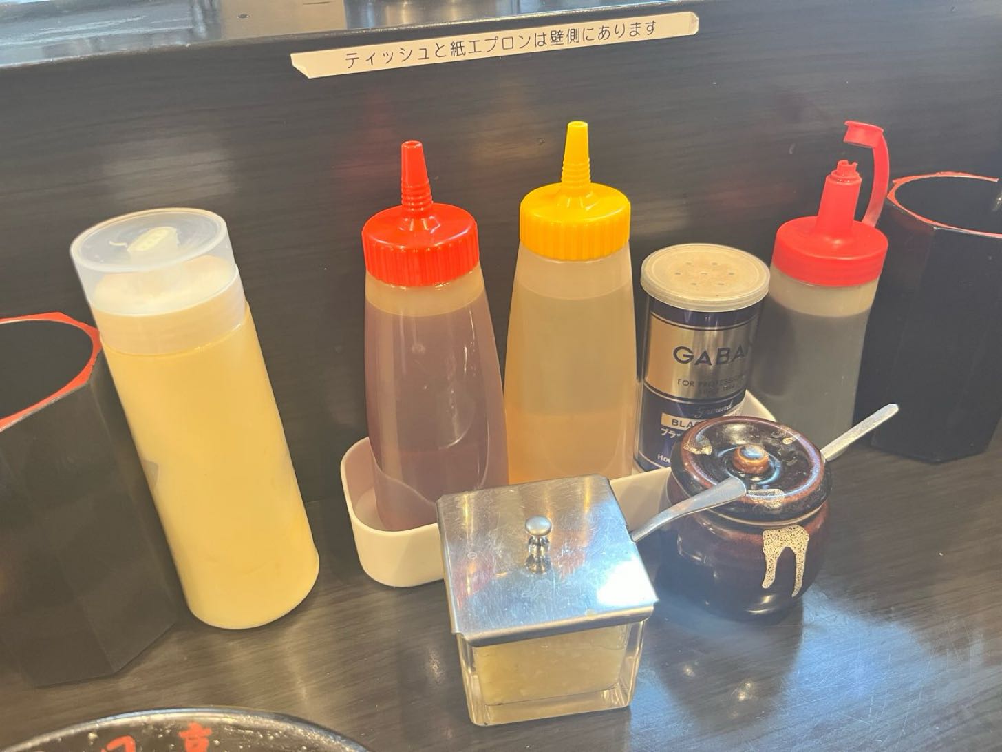 鳥豚油そばは醤油感より脂のコクが出てる感じ。でもまあくどくはない。調味料色々あるけど控えめでいいかも
