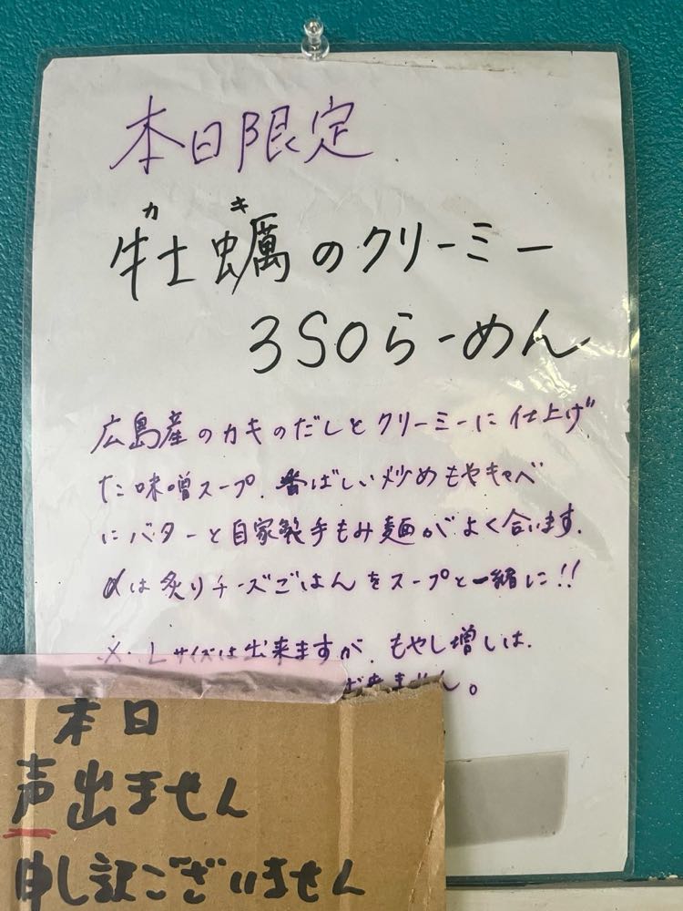 2026牡蠣クリーミー3SOらーめん¥1500