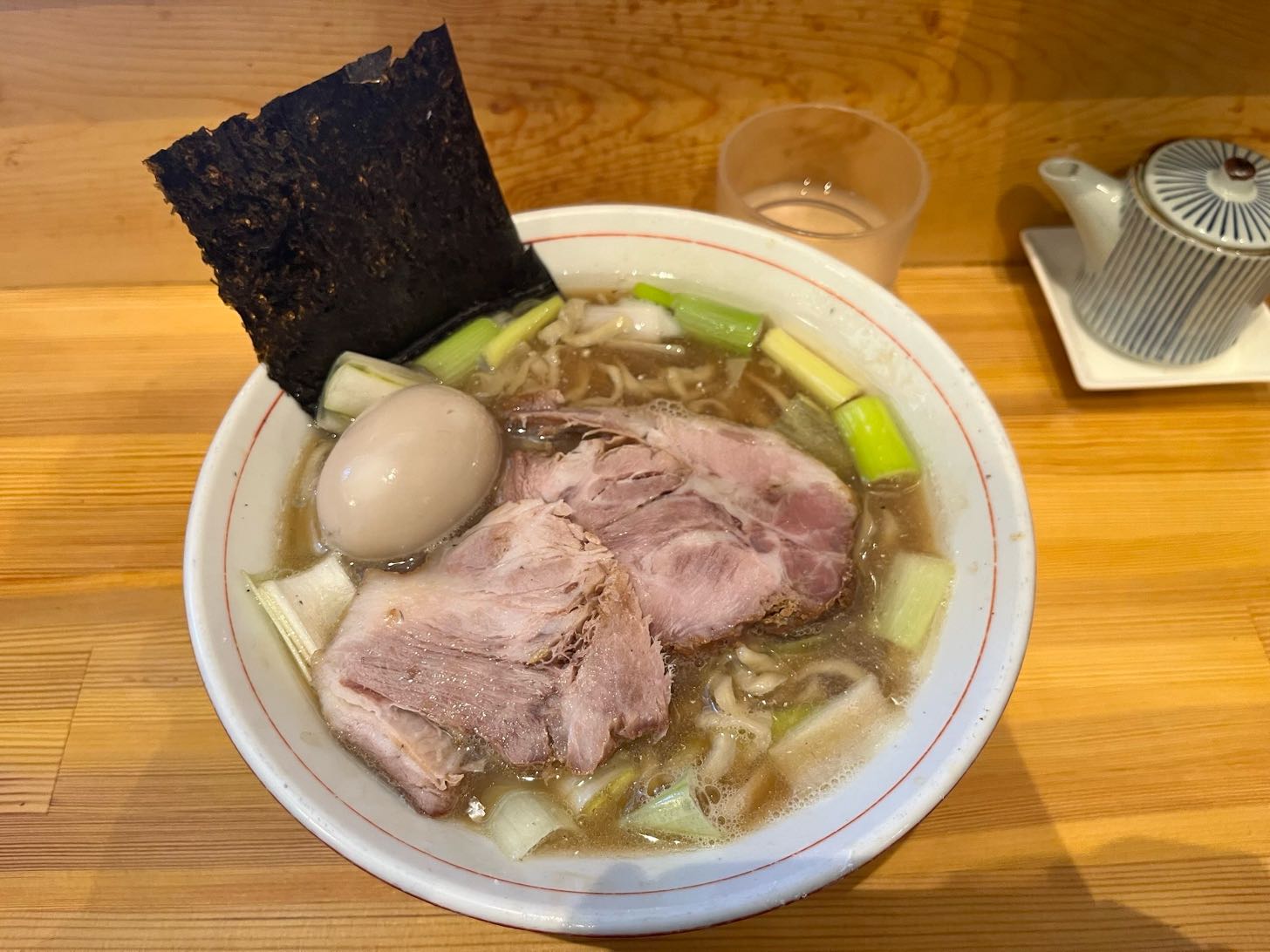 煮干が効いたスープにややボソ感のある手打ち中太縮れ麺。うまい。大きめのネギもいい。チャーシュー1枚って書いてあったけど2枚あった。まあこの辺は多分切った厚さとのバランスだろう。
